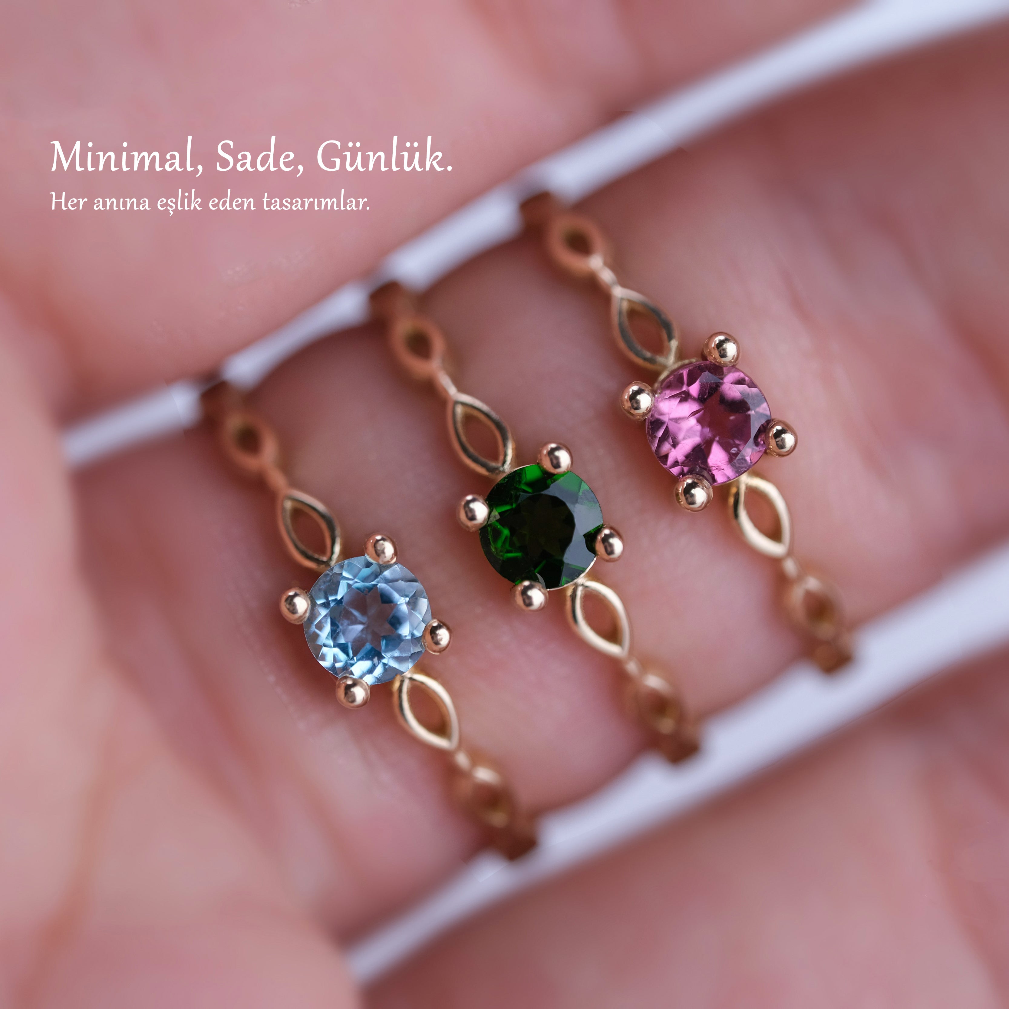 Lira | Oval Kesim Krom Diopsit ve Minimal Pırlantalı Yüzük