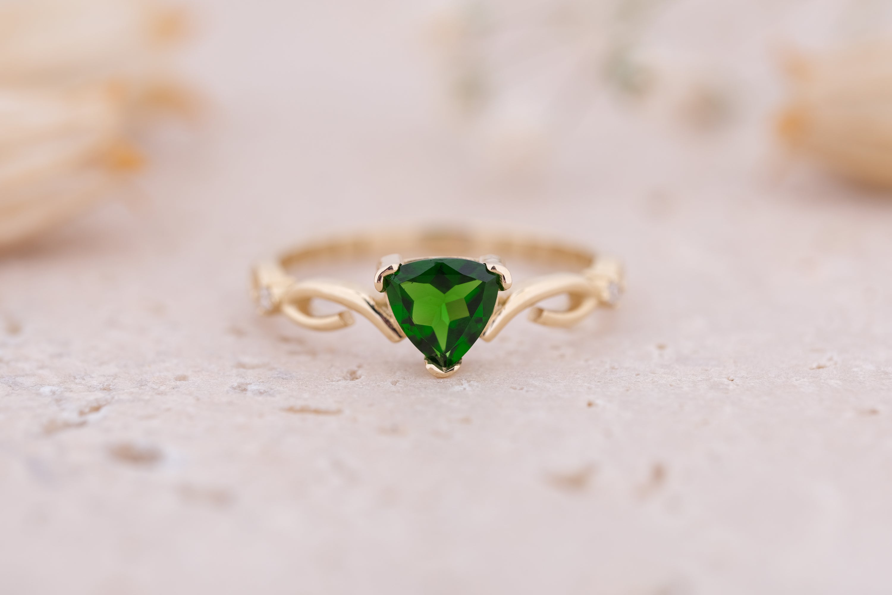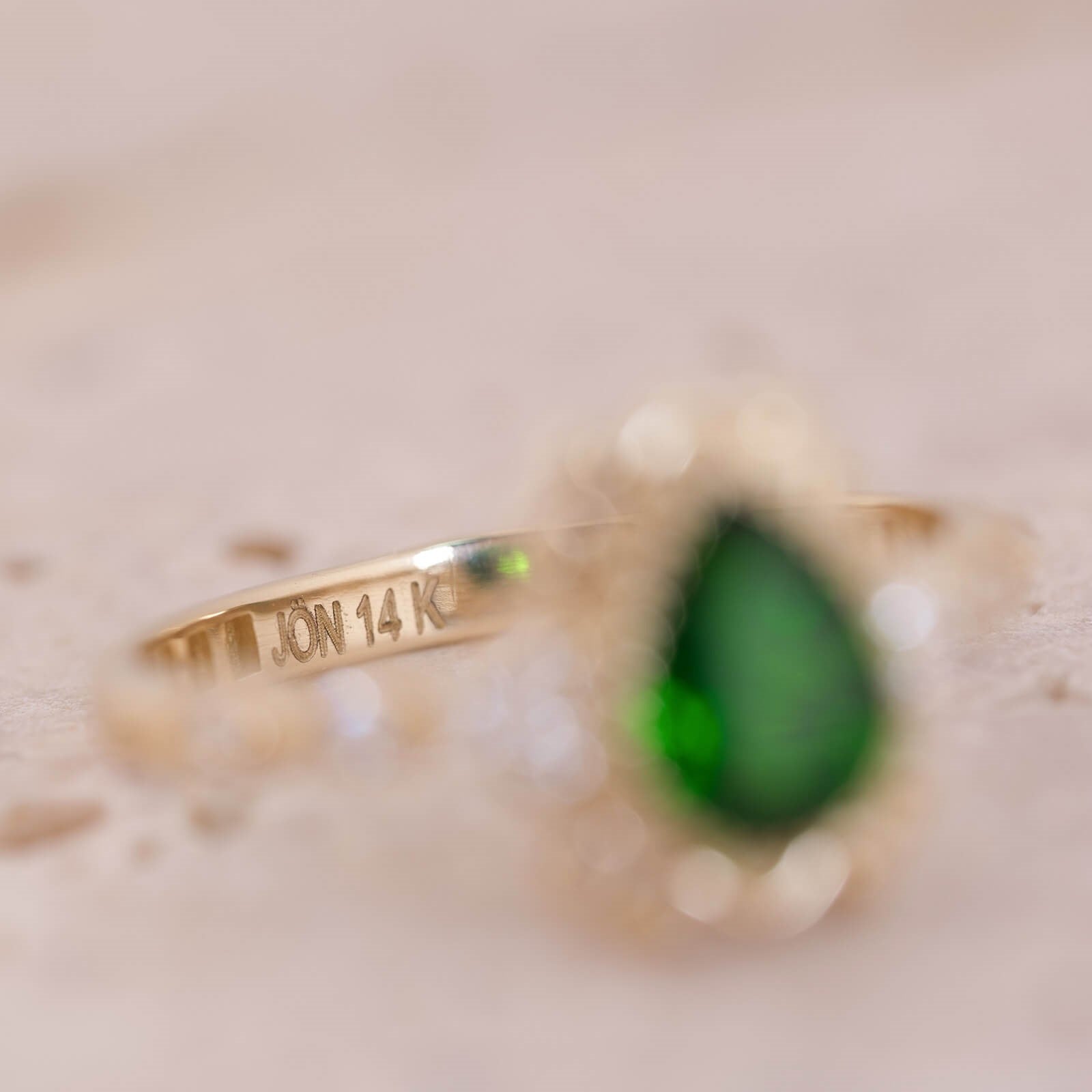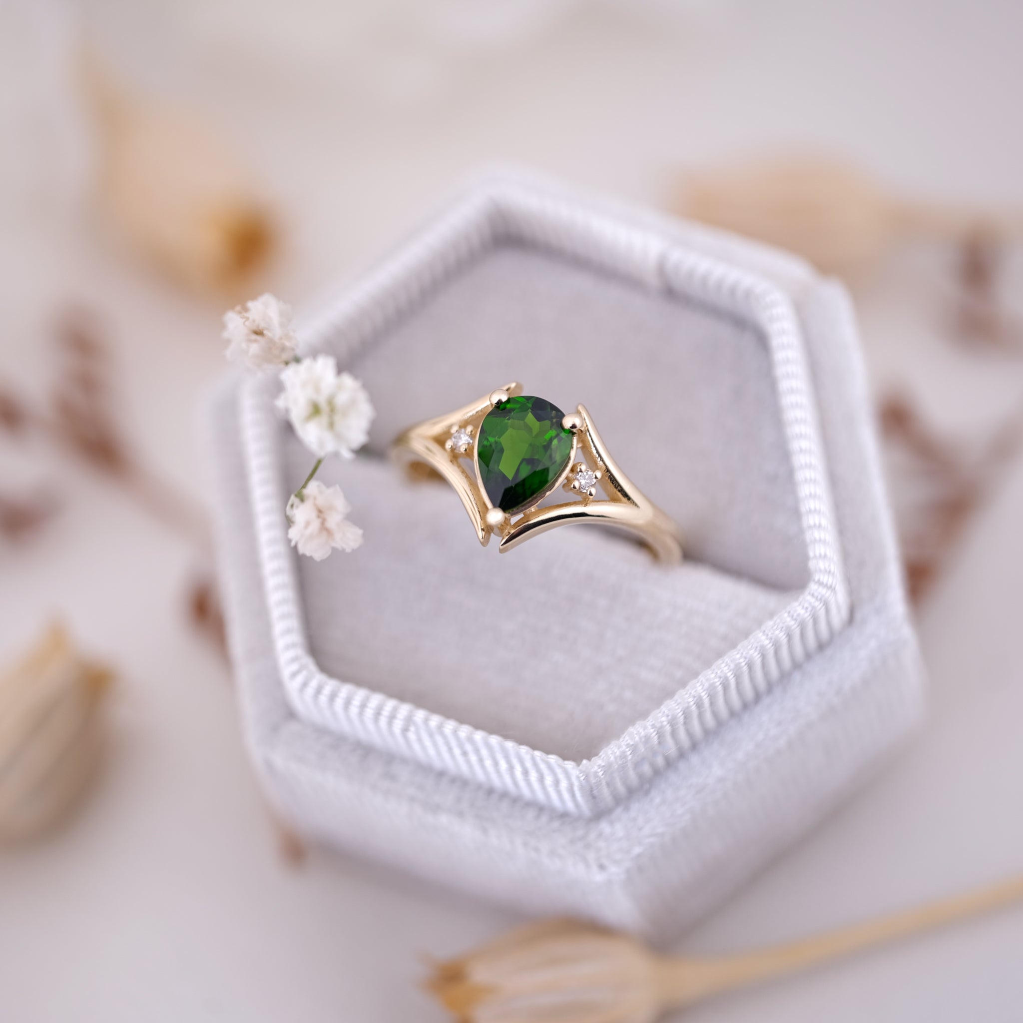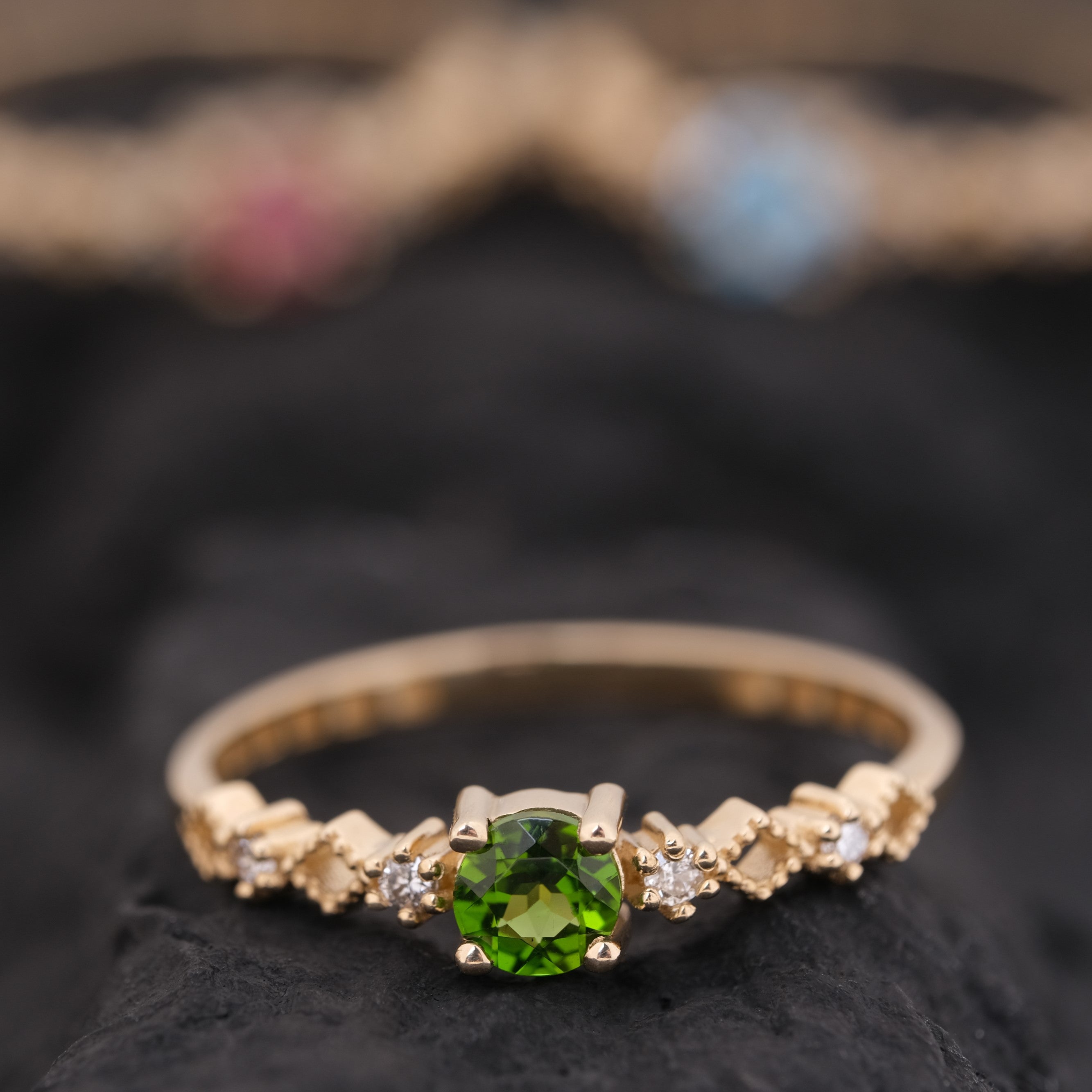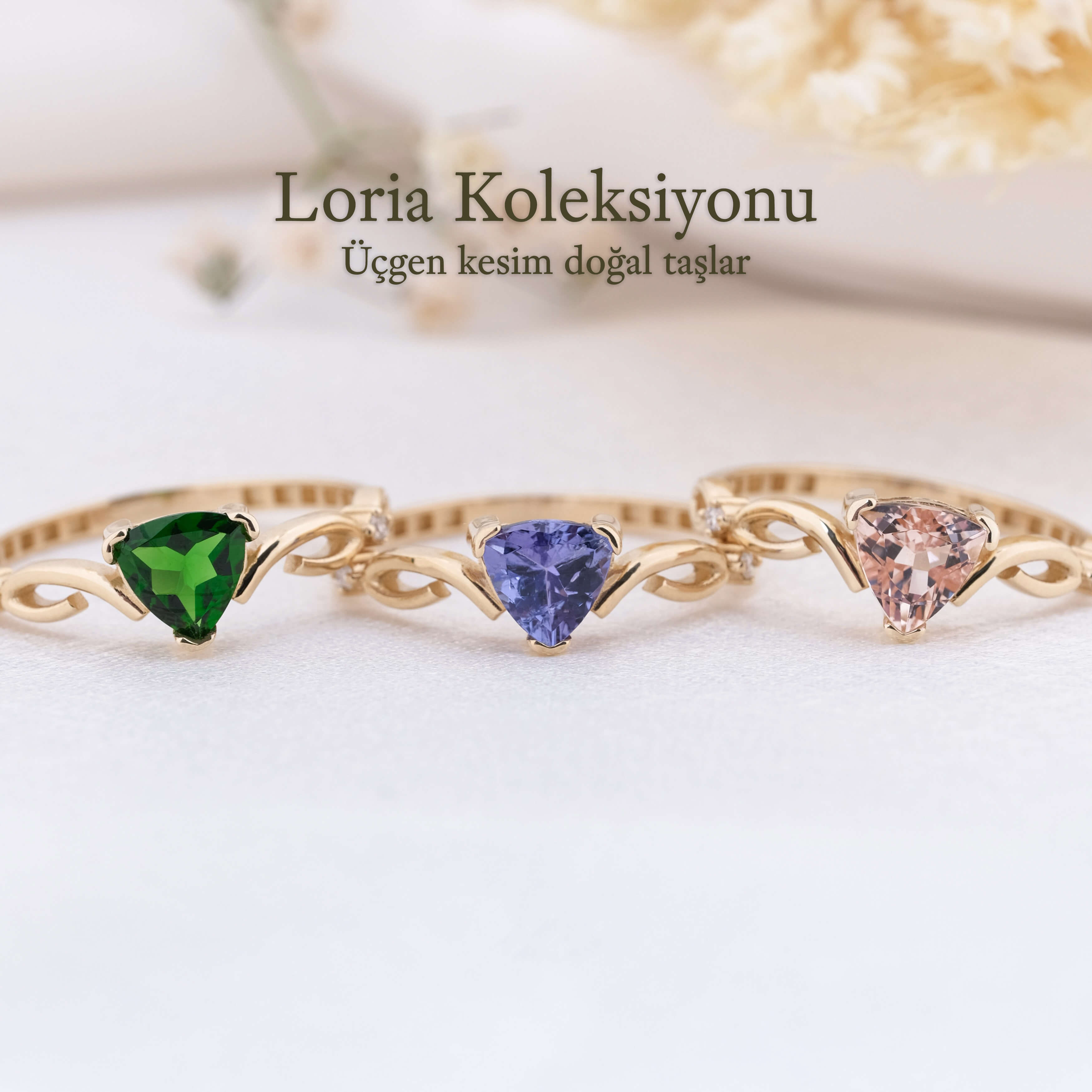 Lira | Oval Kesim Krom Diopsit ve Minimal Pırlantalı Yüzük