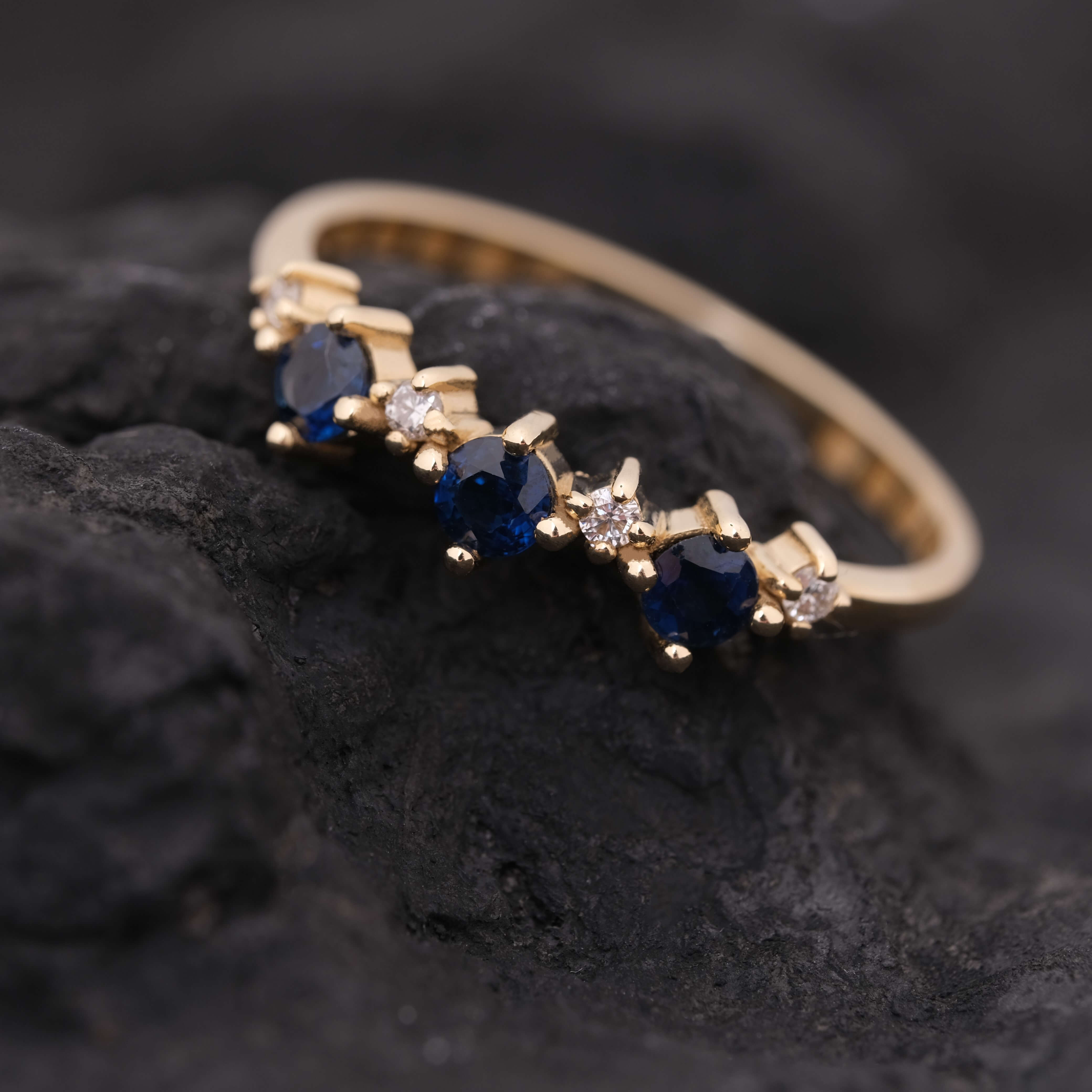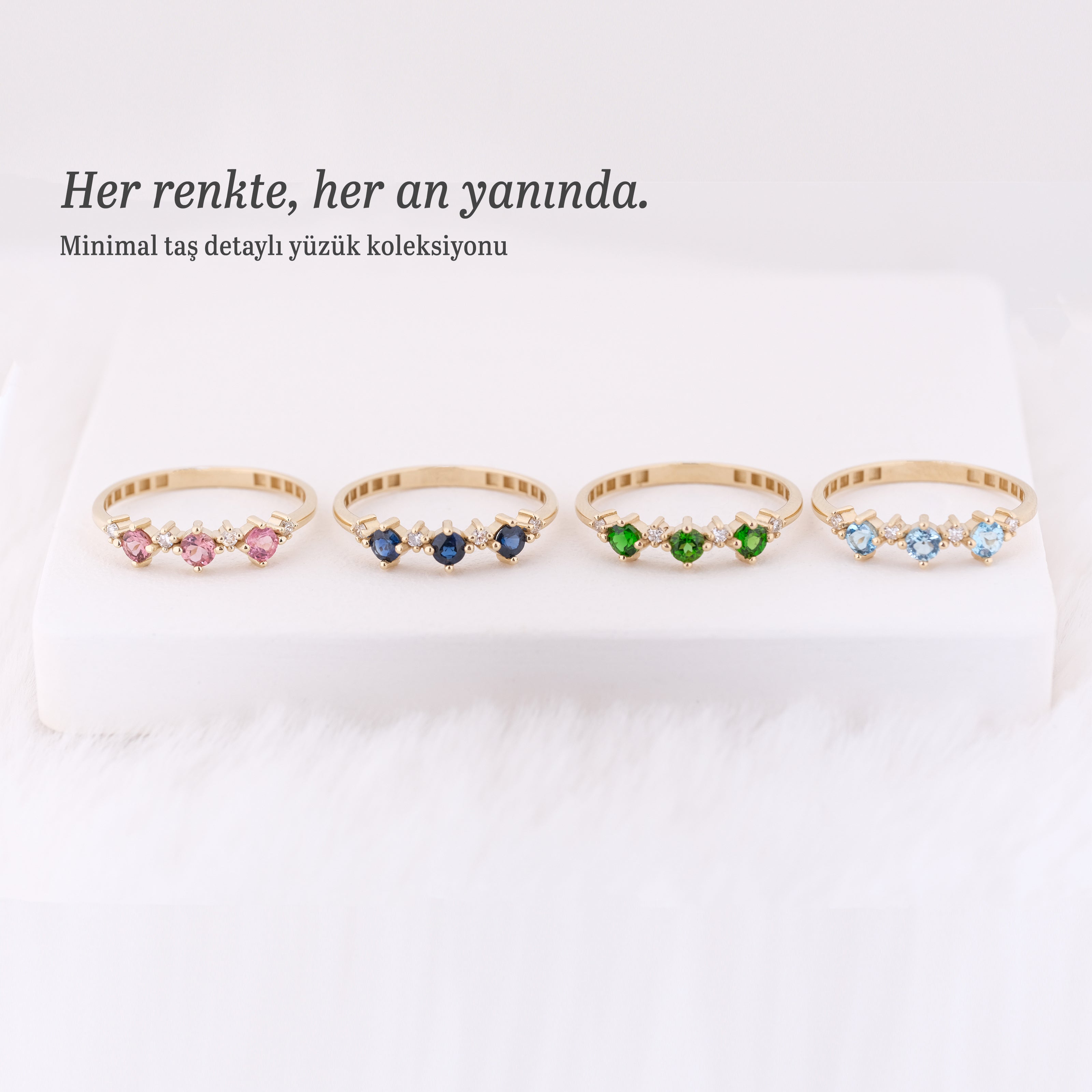Minimal Pırlantalı Swiss Blue Topaz Yüzük