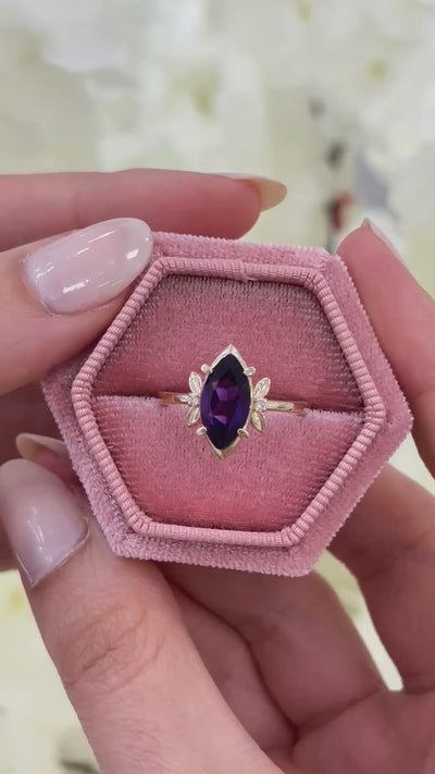 Serenya | Markiz Kesim Ametist ve Pırlantalı Yüzük