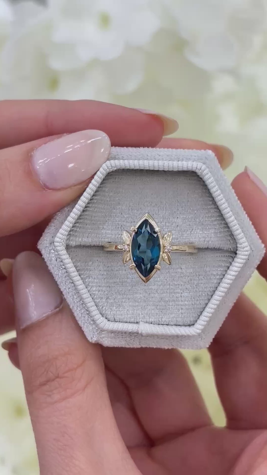 Serenya | Markiz Kesim London Blue Topaz ve Pırlantalı Yüzük
