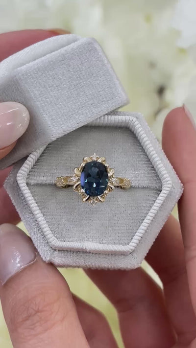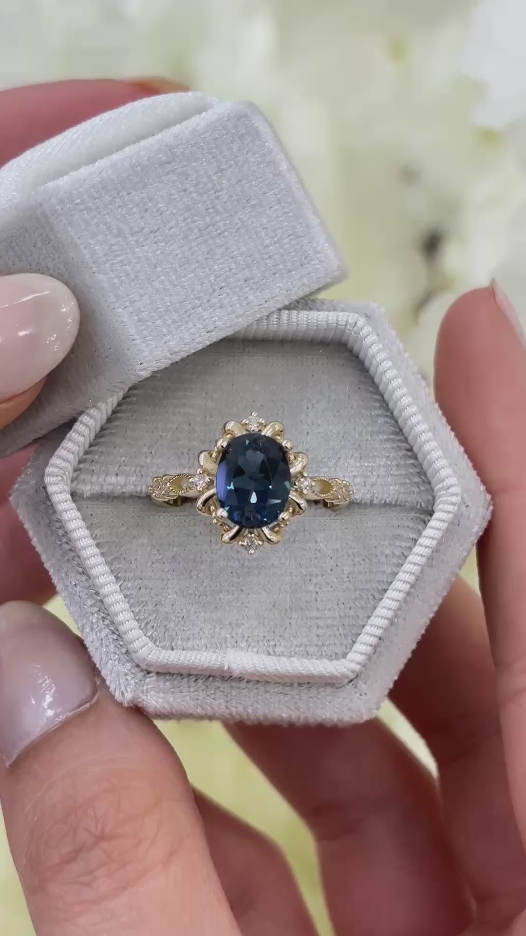 Calmirien | Oval Kesim London Blue Topaz ve Pırlantalı Yüzük