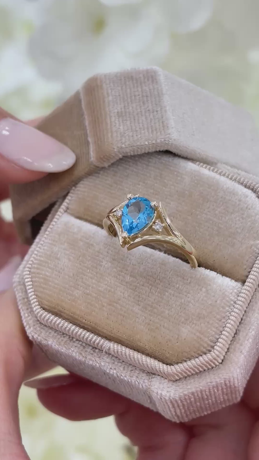 Lirien | Damla Kesim Swiss Blue Topaz ve Pırlantalı Yüzük