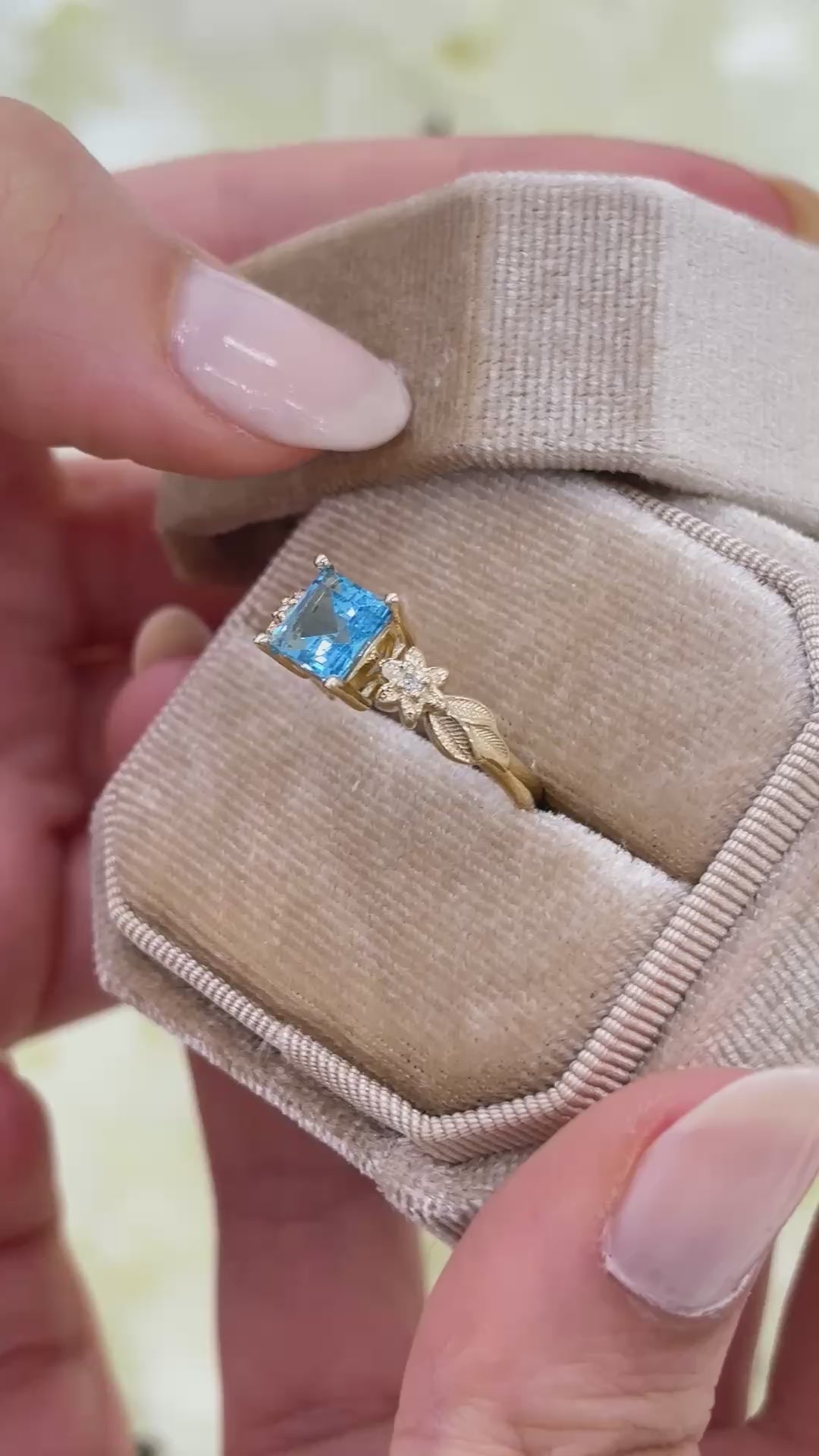 Elyra | Kare Kesim Swiss Blue Topaz ve Pırlantalı Yüzük